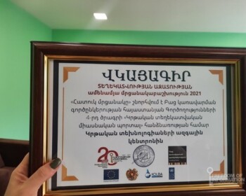 - Award for the NGO, that has contributed to the exercising of the rights of access to information, went to the Helsinki Civil Assembly Vanadzor Office.