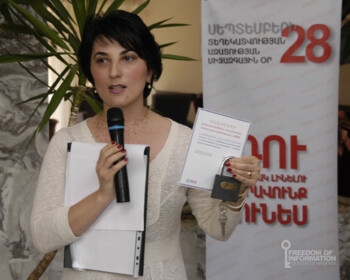 - Award for the journalist most actively covering FOI issues went to Ms. Anjela Stepanyan, ALT TV reporter.